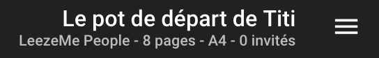En haut à droite de la fenêtre sont indiqués le nom du projet, le type de magazine choisi, le nombre de pages, le format du magazine et le nombre de participants.